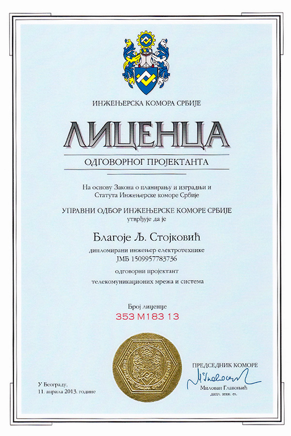 Preduzeće BELING d.o.o. poseduje projektantski studio u sklopu koga zapošljava tim specijalizovan za projektovanje i nadzor instalacija niskog napona. Jedna od delatnosti naše firme je izvođenje merenja i ispitivanja električnih instalacija sa vizuelnim pregledom i izdavanje Stručnih nalaza i Atesta (Rešenje o registraciji). Sva ispitivanja i merenja se izvode prema važećim zakonima, standardima i propisima.