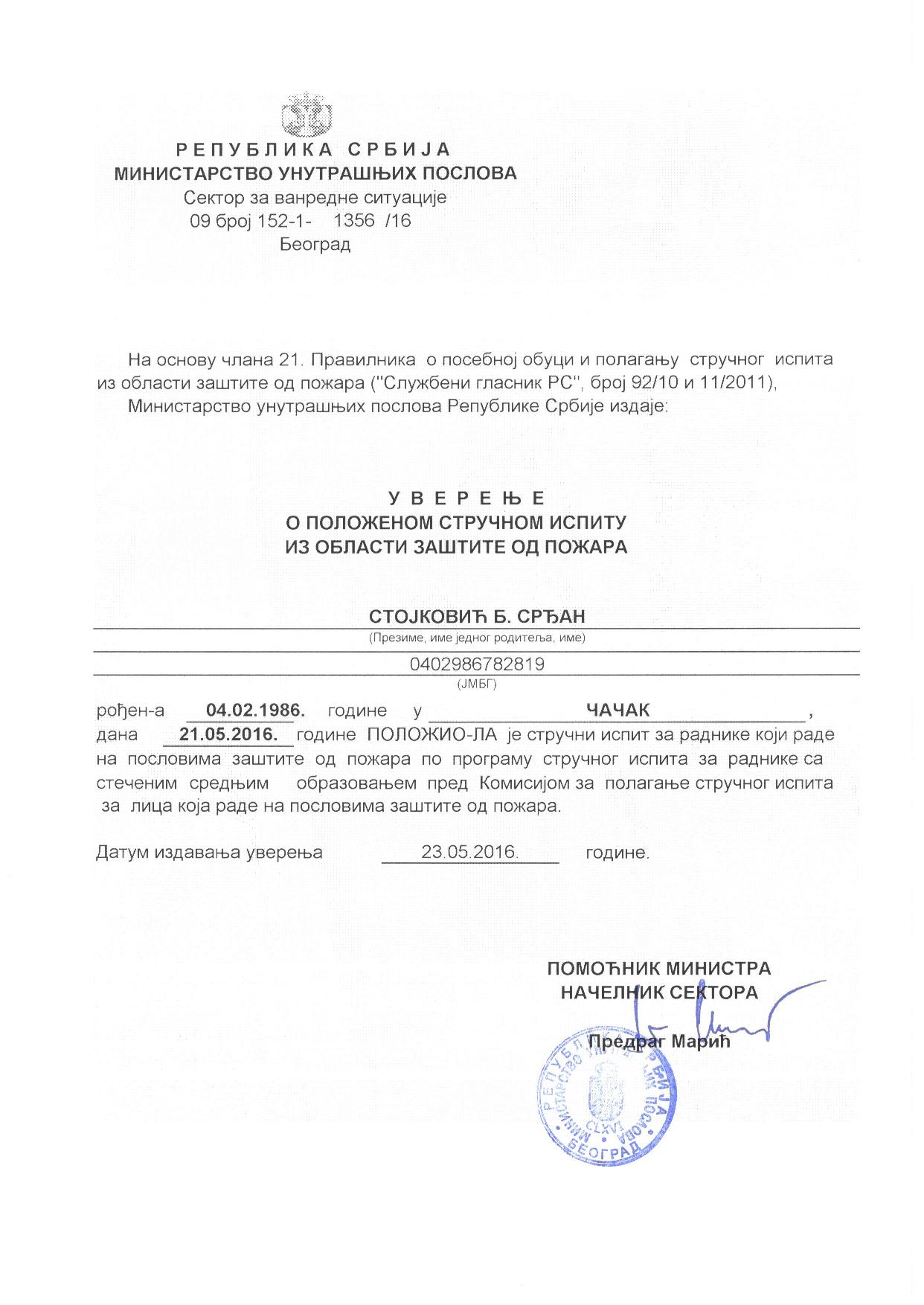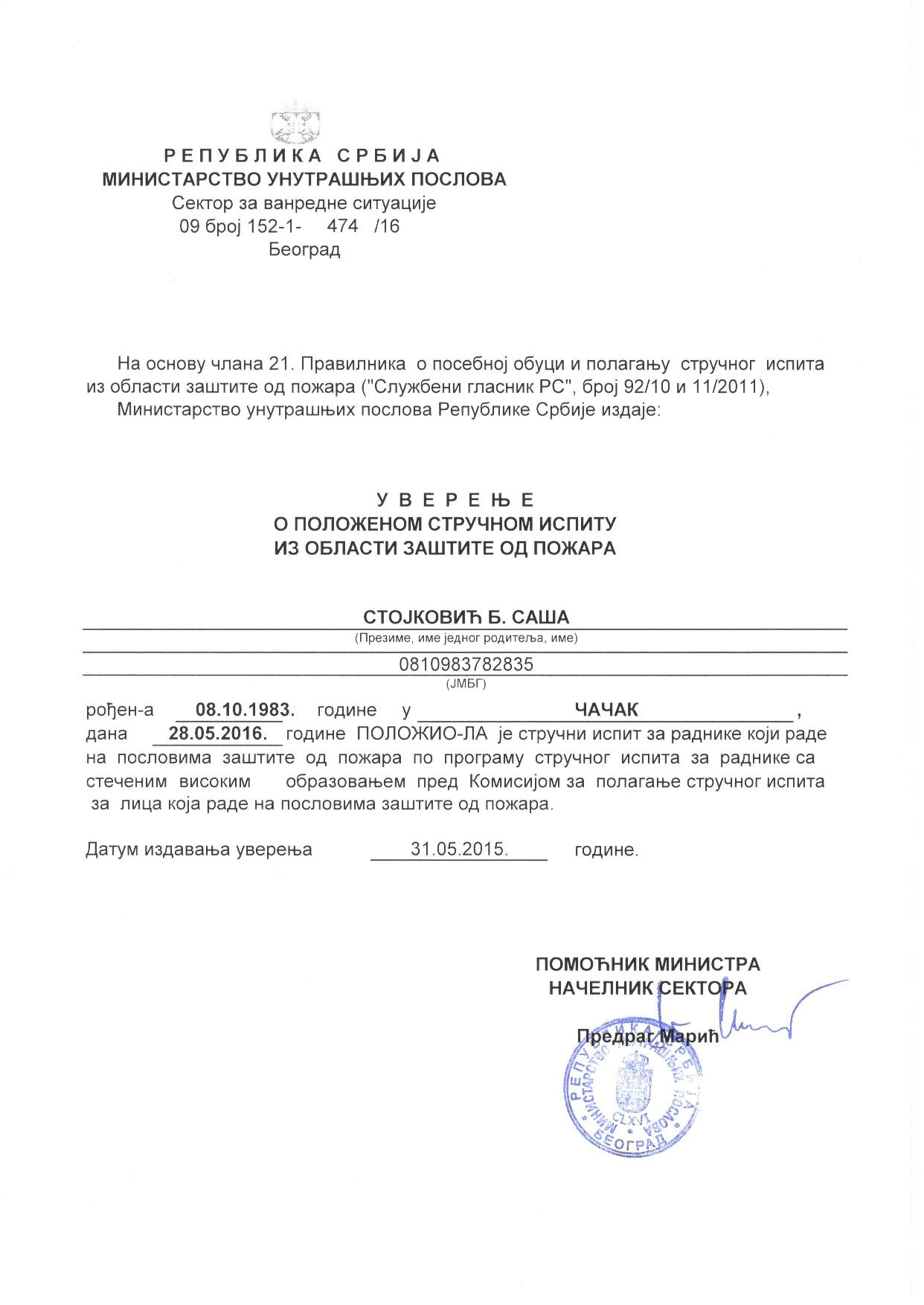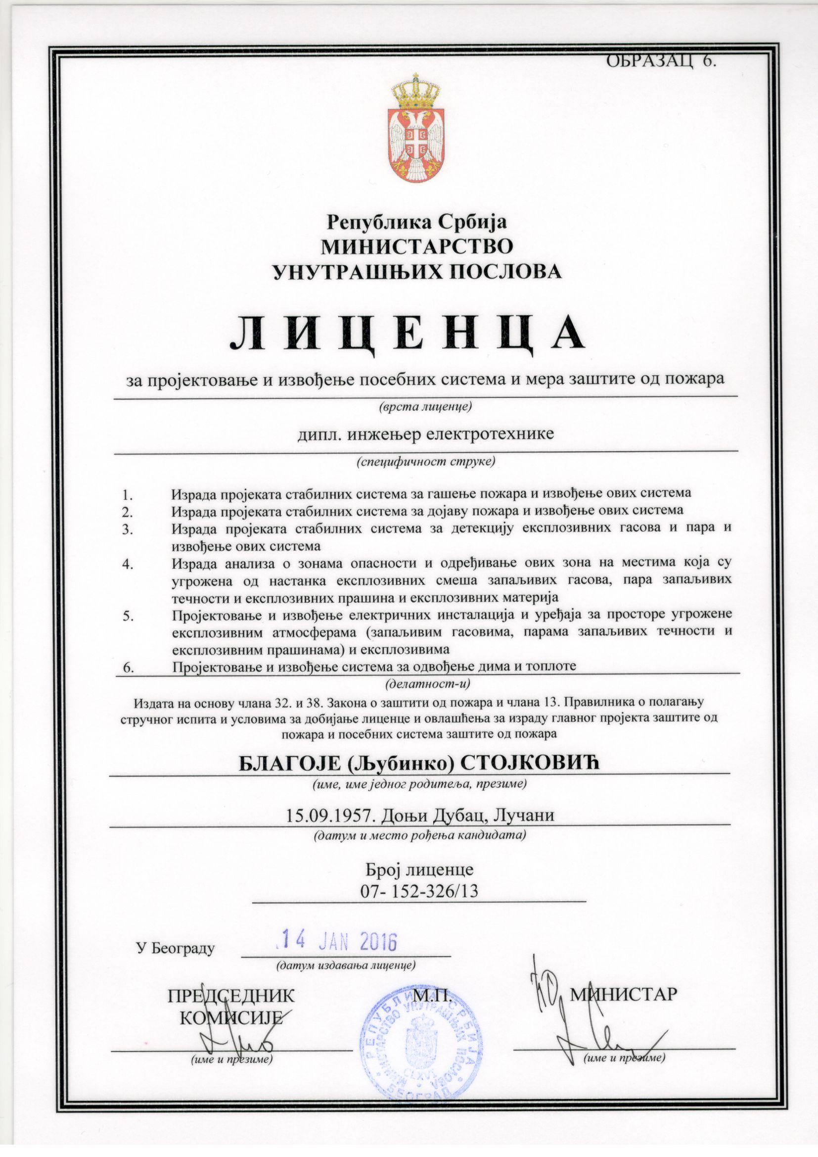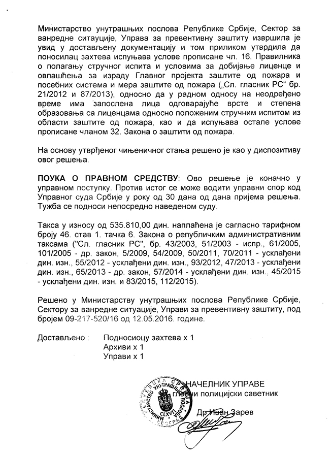Beling d.o.o. izdaje stručne nalaze i ateste, (rešenje o registraciji), koji se koriste kod: